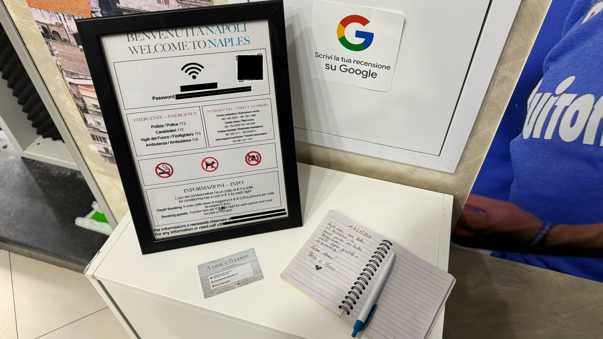On the left you will find this frame with useful informations, emergency numbers, host's contact numbers and least but not last the Wi-Fi password!